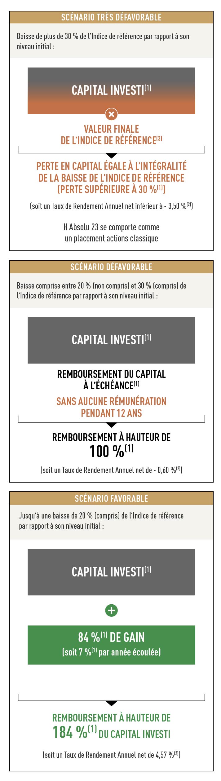 Il appartient aux souscripteurs de comprendre les risques, les avantages et inconvénients liés à un investissement dans le produit et de prendre une décision d’investissement seulement après avoir consulté, s’ils l’estiment nécessaire, leurs propres conseils (juridiques, financiers, fiscaux, comptables ou tout autre) pour s’assurer de la compatibilité d’un investissement dans le produit notamment avec leur situation financière. Ils ne sauraient s’en remettre à une quelconque entité de l’Émetteur ni du Garant de la formule pour cela. Ces dernières ne sauraient être considérées comme fournissant un conseil en investissement ou un conseil d’ordre juridique, fiscal ou comptable. L’Émetteur ne peut être tenu responsable des conséquences financières, juridiques, fiscales ou autres résultant d’un investissement direct ou indirect dans le produit.