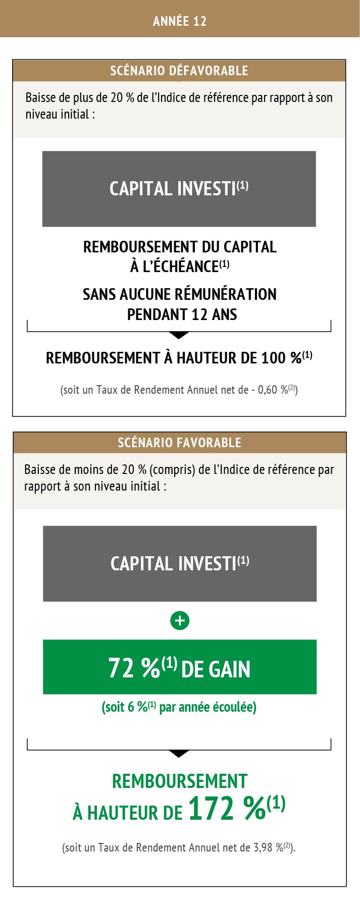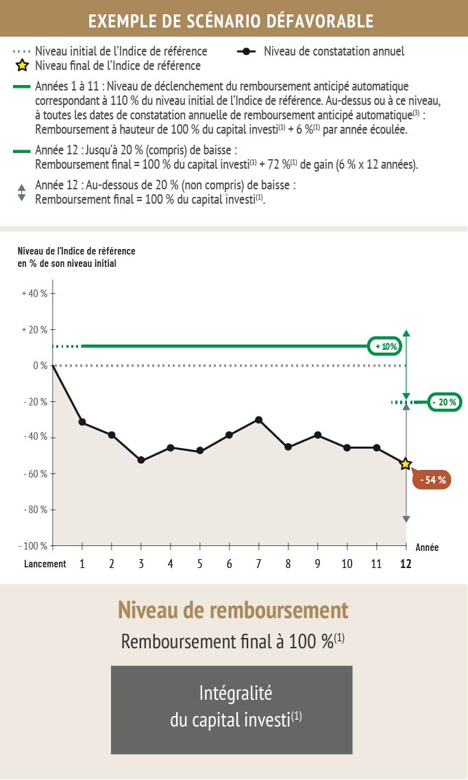 Risque lié à la directive européenne sur le redressement et la résolution des établissements de crédit et des entreprises d’investissement (la "directive") : Depuis le 1er janvier 2016, l’autorité de résolution compétente peut réduire ou convertir en fonds propres tout ou partie du principal des titres de créance, ce qui pourrait résulter en la perte partielle ou totale du montant investi. De plus, l’exercice de tout pouvoir dans le cadre de la Directive, ou toute suggestion d’un tel exercice, peut affecter significativement et défavorablement les droits des titulaires de titres de créance, le prix ou la valeur de leur investissement (dans chaque cas, quel que soit le niveau de protection du capital prévu par le titre) et/ou la capacité de l’Émetteur à satisfaire à ses obligations en vertu des titres de créance. Toute somme ou montant payable par l’Émetteur pourra être réduit ou modifié, à tout moment, en application de l’exercice d’un renflouement interne (bail-in) par toute autorité compétente.