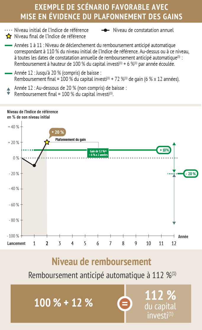 Les principales caractéristiques du produit figurant aux présentes n’en sont qu’un résumé. Les souscripteurs sont invités, avant toute décision d‘investissement, à prendre connaissance de la documentation juridique du produit telle que renseignée à la rubrique "Disponibilité du Prospectus" ci-après et à lire attentivement la rubrique facteurs de risques du Prospectus de Base relatif au produit. En cas d’incohérence entre ce document et la documentation juridique du produit, cette dernière prévaudra.