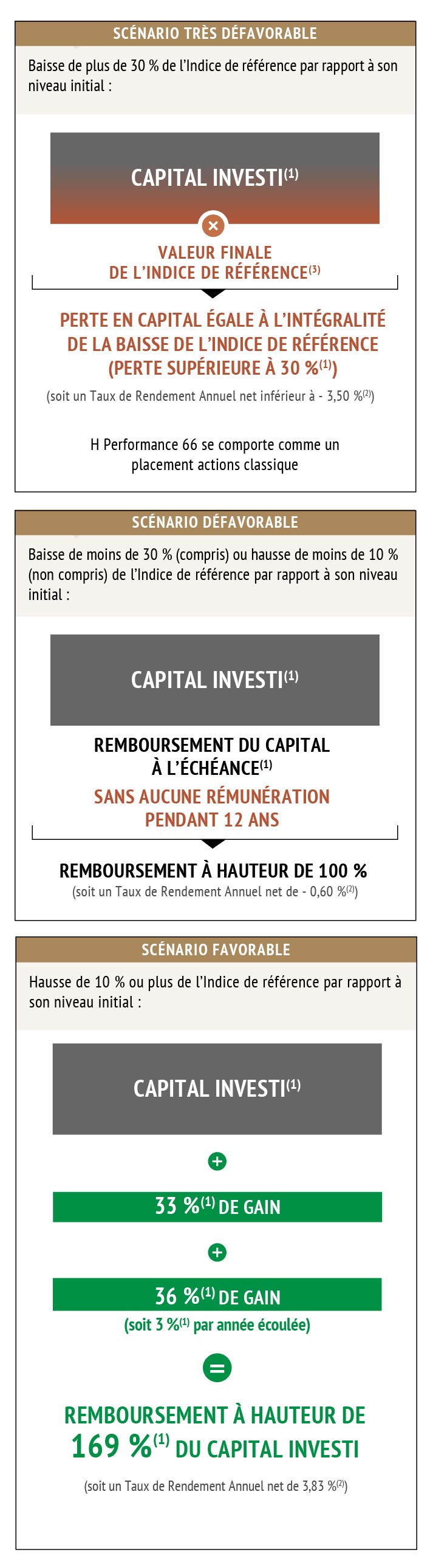 H Performance 66 (ci-après les "Titres de créance") sont des Titres de créance de droit français présentant un risque de perte en capital partielle ou totale en cours de vie et à l’échéance, émis par NATIXIS STRUCTURED ISSUANCE (véhicule d’émission dédié au Luxembourg) ayant fait l’objet d’une demande d’admission à la cotation sur le Marché officiel de la Bourse de Luxembourg (marché réglementé), pouvant être utilisés comme valeurs de référence de contrats d’assurance-vie, de capitalisation ou de retraite libellés en unités de compte.