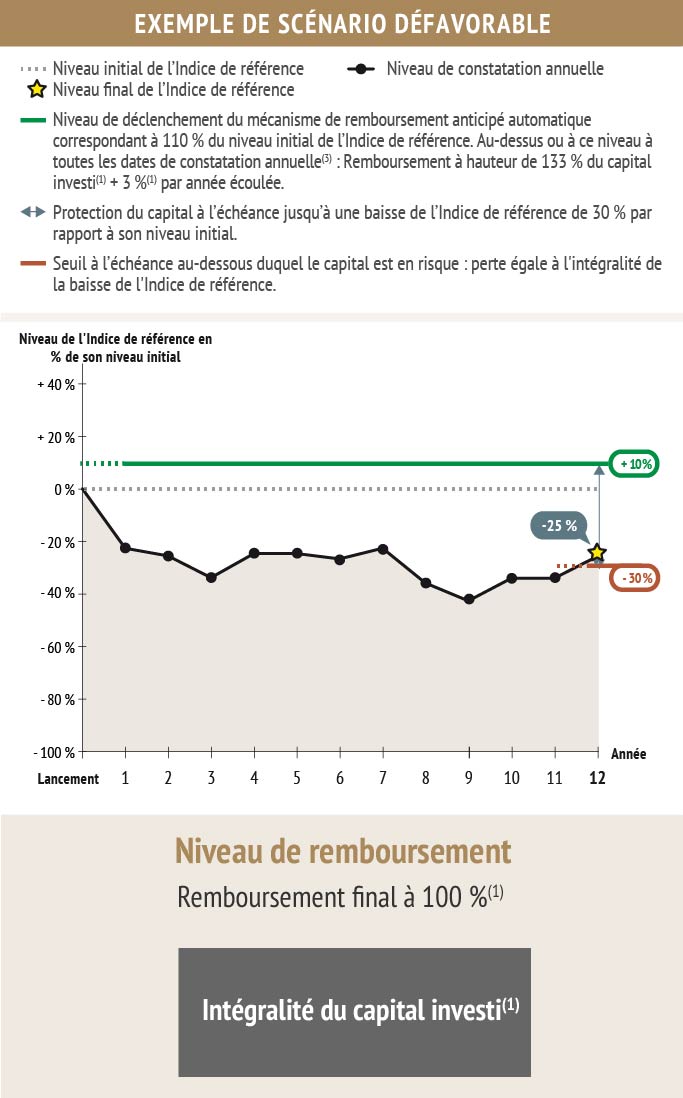 L’attention des souscripteurs est notamment attirée sur le fait qu’en acquérant les Titres de créance, ils prennent un risque de crédit sur l’Émetteur et sur le Garant de la formule, un risque de marché ainsi qu’un risque lié à la liquidité du Titre de créance. En cas d’incohérence entre cette communication à caractère promotionnel et la documentation juridique des Titres de créance, cette dernière prévaudra.