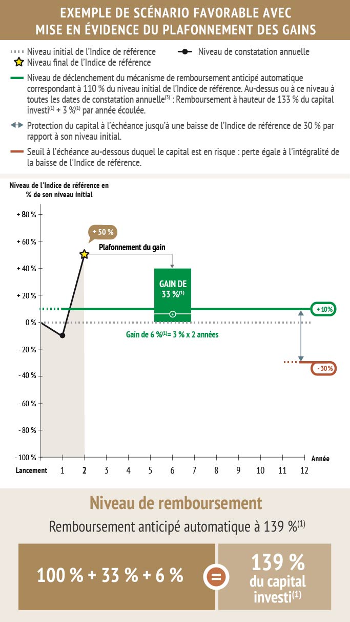 Les principales caractéristiques des Titres de créance exposées dans cette communication à caractère promotionnel n’en sont qu’un résumé. Les souscripteurs sont invités, avant toute décision d‘investissement, à prendre connaissance de la documentation juridique du produit telle que renseignée à la rubrique "Documentation Juridique" ci-après et de lire attentivement la rubrique facteurs de risques du Prospectus du produit. En cas d’incohérence entre ce document et la documentation juridique du produit cette dernière prévaudra.