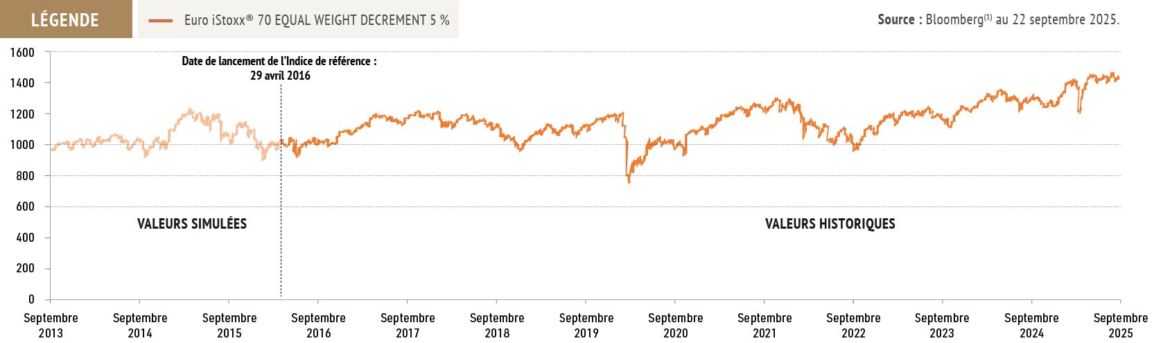 Avertissement STOXX LTD® : l’Indice de référence Euro iStoxx® 70 Equal Weight Decrement 5 % ainsi que ses marques sont la propriété intellectuelle de STOXX Limited, Zurich, Suisse et/ou ses concédants, et sont utilisés dans le cadre de licences. STOXX et ses concédants ne soutiennent, ne garantissent, ne vendent ni ne promeuvent en aucune façon les Instruments Financiers basés sur l’Indice de référence et déclinent toute responsabilité liée au négoce des produits ou services basés sur l’Indice de référence. Les souscripteurs souhaitant de plus amples informations sont invités à consulter le site https://qontigo.com/.